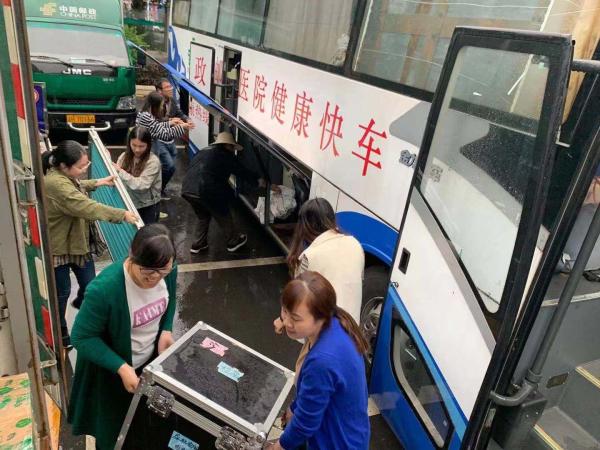 10月12日,天公不作美,酉阳下起大雨,中午时分重庆市邮政医院体检队准备转场到秀山,体检车却起不了步,司机师傅立刻下车检查车辆损坏原因,联系修理厂专业人员修理。4个小时后,得到修理厂的答复是:“车要明天才能修好”。车上顿时炸开了锅,“明天秀山还有职工要体检”、“明天的体检工作怎么办”……体检队蔡队长思考片刻,当机立断,郑重宣布“我们今天一定要到秀山去。”这时天色已渐晚,天空下着瓢泼大雨,蔡队长不顾自己还发着高烧,在雨中指挥队员们,队员们齐心协力、众志成城、发挥团结的力量冒着大雨把体检器材纷纷搬运到在酉阳邮政局安排的邮车上,队员们分别乘坐2辆车,于晚上7点30分先后到达秀山。第二天,秀山职工体检工作如期开展。