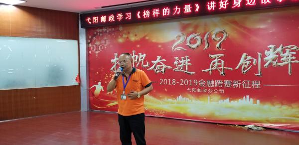 9月26日,弋阳县分公司党支部联合工会举办了“学习《榜样的力量》讲好身边故事”演讲比赛活动,县分公司中层以上干部、行政班人员、支局所长、参赛选手和在职共产党员共计40余人参加了比赛活动。活动由弋阳县分公司鲍迅迅副总经理、工会主席主持,弋阳县分公司党支部书记、总经理潘林峰致辞。