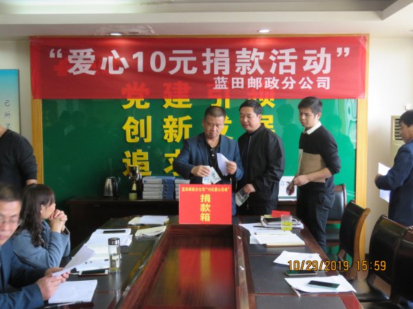 在我们身边,还有许多贫困母亲和贫困儿童以及残疾人家庭因贫困难以维持正常生活,为了充分发扬中华民族“扶危济困”的传统美德,让我们每一个职工都伸出温暖的双手,奉献一片真挚的爱心,蓝田邮政分公司于2019年10月29日,开展了爱心10元捐款活动,倡议职工每人捐献10元,为贫困家庭献上一份爱心。点滴爱心暖流,一缕冬日阳光,感受真情友爱。捐款采取自愿原则,金额不限。100名职工参与了本次爱心10元捐款活动,捐款金额1240元,捐款全部汇往陕西省慈善协会对公账户,用于贫困家庭帮扶。