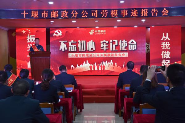 10月26日,十堰市分公司隆重举办“不忘初心、牢记使命”劳模事迹报告会。对照先进典型,弘扬劳模精神,激励全市邮政员工进一步强化坚定责任、勇于担当、奋发有为,用先进的思想武装人,用身边的榜样感染人,用高效的执行引领人,用优秀的业绩鼓舞人。市分公司领导,市分公司各部室、直属单位负责人,各县(市、区)分公司领导班子成员,全市网点支局经理等150余人参加了报告会。