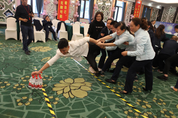 启动会后,为丰富员工的文化生活,促进员工之间的沟通交流,强化团队凝聚力、向心力及归属感,分公司工会又组织开展了“我奋斗、我快乐”员工趣味活动,所有参会人员全部参与。首先是分组,一共分为了十组,每组10人,推举了组长。活动设置了三个集体项目,分别是:爱的魔力转圈圈、群龙取水、老王买菜。由于本次趣味活动设置的都是集体项目,对大家的团结协作有很高的要求,但每组成员都能够协同合作,互相帮助,大家遵循“安全第一,比赛第二”的原则,没有人在意比赛中的失误或胜负的得失,尽享活动的快乐,在大笑中尽情释放工作压力。本次趣味活动鼓舞了员工跨赛的士气,增强了员工团队凝聚力、向心力,为打赢2019-2020跨年战役开了好头。