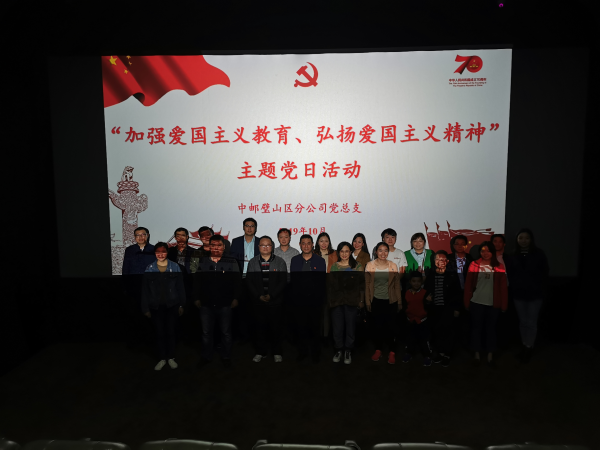 为认真贯彻落实中央“不忘初心、牢记使命”主题教育精神,中邮重庆市璧山区分公司组织观看了彰显爱国主义情怀电影——《我和我的祖国》。此次观影活动旨在引导职工干部在学习中了解我们党领导人民进行革命、建设、改革的光辉历程和光荣传统,了解新中国成立以来特别是改革开放以来党和国家事业发展的伟大成就和宝贵经验,切实做到知史爱党、知史爱国,自觉践行初心和使命。