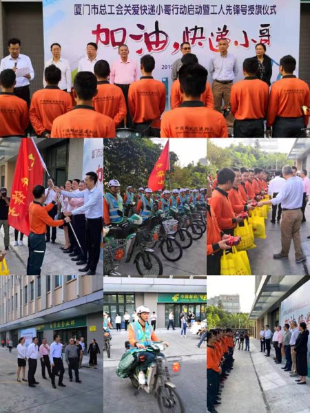 许毅青书记在启动仪式上致辞。他强调指出,市总工会启动以“加油,快递小哥”为主题的关爱行动,是为了给快递物流职工加油打气,鼓舞行业士气,提倡岗位奉献,投身特区建设,服务中心大局。快递小哥是快递行业的主力军,是践行爱岗敬业精神的奔跑者,为提高市民生活质量和加快厦门经济发展做出巨大贡献。