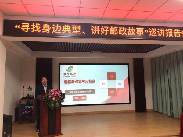 “寻找身边典型、讲好邮政故事”主题巡讲活动就是第二批“不忘初心、牢记使命”主题教育的重点活动之一。天津邮政成立了评委会,各单位按照市分公司要求从爱岗敬业、真情服务等5个方面寻找身边典型人物。各单位通过民主选举、逐级推荐,共选树出先进典型54人,经过两轮评审,共推选出来自不同专业的12名先进典型人物。公司党委还先后组织了两场“身边典型”劳模座谈会和典型事迹交流会。市分公司党委办公室配合市分公司工会撰写巡讲稿件,为12名先进典型人物录制了专题宣传视频,在各单位楼宇大厅和基层单位滚动播放,同时利用微信公众号及时宣传报道,号召全体员工关注并参与学习交流。市分公司工会成立了“身边典型”8人宣讲团,于第二批主题教育期间在各单位开展巡讲,与一线员工面对面交流经验,唱响主旋律,传递正能量,共同营造战胜困难、共谋发展的良好氛围。
