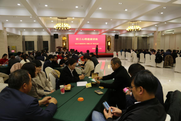 王继锋老师通过游戏互动,围绕职工心理健康常识、繁琐事情的解决与平衡、常见心理困扰及简单应对策略,以及如何控制个人情绪和提高心理健康水平、压力与情绪的关系等为主题,通过现场互动,告诉大家培养正确的自我认知能力、良好的情绪调控能力和良好的社会适应能力,是实现自我全面发展的重要条件。要学会控制自己的情绪,掌握心理健康知识,树立心理健康理念,养成健康的生活方式。