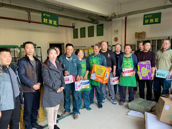 上下齐心,同迎旺季,各基层单位立即行动,落实上级工作部署。 永善县邮政工会11月14日,永善县邮政总经理周宝,工会主席周显祥对奋战一线的分拣封发、揽投站全体职工进行了慰问,为奋战在“双十一”的一线人员送去了牛奶、面包、方便面、矿泉水等一批慰问品。镇雄县邮政工会:11月14日,在“双11”投递高峰期到来之际,镇雄县邮政分公司党支部书记、总经理严虹慰问组一行到邮件分拣中心向投递员、分拣员送去关爱和温暖,并为一线工作人员送上慰问品,鼓励他们,在生产特殊时期,要继续发扬吃苦耐劳的服务精神,圆满完成工作任务......