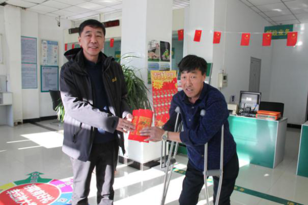 11月25日上午,工会主席、综合办公室主任等相关人员代表分公司来到孔国支局,为袁景春同志送去捐助款和慰问信,袁景春同志非常激动,留下了激动的泪水,是邮政分公司给了给了他生的希望,非常感谢领导对他的关心和帮助。赵主席嘱咐一定好好养病,争取早日回到工作岗位上来,以后有什么困难和组织说,分公司一定会给予最大的帮助。