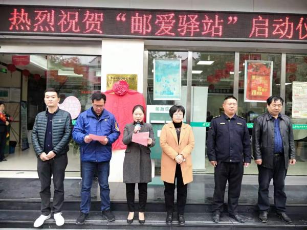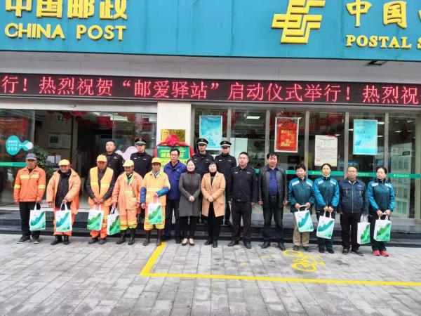 为贯彻落实集团公司“人民邮政为人民”的战略部署,积极响应江西省总工会关于推进户外劳动者“爱心驿站”建设的倡议,规范“邮爱驿站”建设及服务,打造邮政高质量服务人民、服务社会的责任感企业,11月28日上午9时,由弋阳县总工会与弋阳县邮政分公司联合举办的“邮爱驿站”启动仪式在县城南支局举行,县总工会、县邮政分公司、县城管大队相关领导,以及县邮政分公司各部门负责人、环卫工人、投递员、城管大队等户外工作者代表,共计30余人参加了启动仪式。县工会副主席江云、县邮政分公司副总经理鲍迅迅共同为邮爱驿站揭牌,并向劳动者代表赠送了爱心礼包。