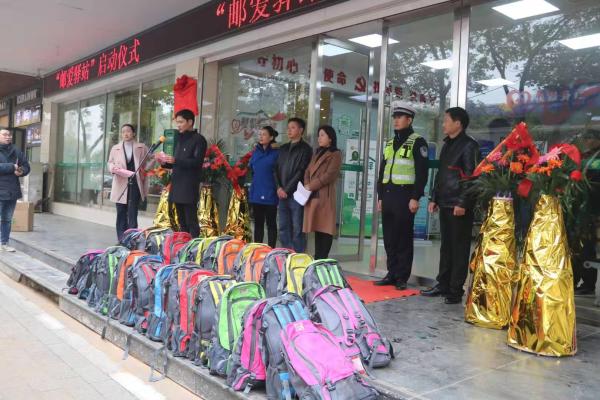11月28日上午,鄱阳县总工会与鄱阳县邮政分公司联合举办的“邮爱驿站”启动仪式,在鄱阳县东湖大道营业所举行。鄱阳县总工会常务副主席方淑萍、副主席喻华亮、宣传部长赵锦恩、县邮政分公司副总经理徐东虹、蓝天救援队外联部长万敏和城管、交警、环卫、邮政速递、蓝天救援队等户外工作者代表以及党员、志愿者代表50多人参加启动仪式。方淑萍、徐东虹分别在“邮爱驿站”启动仪式上致辞,共同为“邮爱驿站”揭牌,并为户外工作者代表赠送“爱心礼包”。