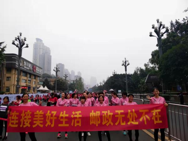 11月10日SHERO2019重庆国际女子半程马拉松赛于在南滨路成功开跑,中邮重庆市南岸区分公司组“邮政跑团”参加,通过跑步来展现邮政女职工的青春与活力。