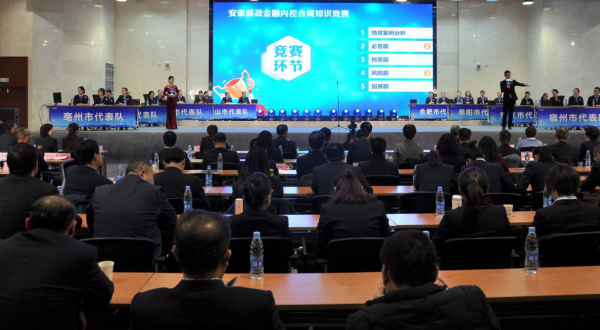 12月2日上午,2019年安徽邮政金融内控合规知识竞赛决赛在中国邮政储蓄银行合肥基地管理中心圆满收官。省银保监局大型银行管理处副处长施峰,省总工会劳动和经济工作部副部长储济安,省邮储银行党委书记、行长吴祖讲,省邮政分公司党组成员、副总经理、工会主席杨志权,省邮储银行党委委员、副行长、工会主席周蕙民,省邮政分公司、省邮储银行相关部门负责人以及相关人员现场观看了12月2日上午的决赛,各地邮政通过安徽邮政官微观看直播。省邮储银行党委书记、行长吴祖讲致辞, 深刻阐释了本次竞赛举办的背景和重要意义,并对全体参赛选手提出了殷切期望。