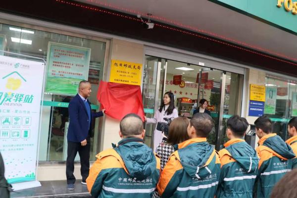 11月28日上午9点,广信区“邮爱驿站”建设启动仪式在旭日邮政所举行。广信区总工会副主席徐明玉,区城管工会副主席杨家富,区公司副总经理徐满斌,分公司副总经理、工会主席黄晓波,以及城管、环卫、快递企业等二十多位户外劳动者代表出席了启动仪式。徐玉明与徐满斌共同为“邮爱驿站”揭牌。