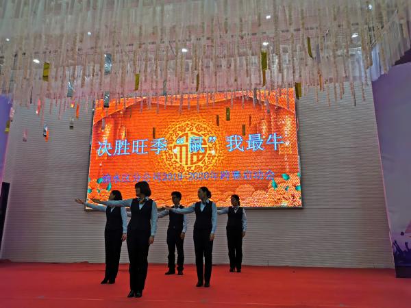 启动会结束后,渝水区分公司举行了2019-2020年金融跨赛晚会,在激情高亢的水鼓舞《中国龙》中拉开了晚会的序幕。由各网点表演的歌曲、朗诵、抓钱舞、手语操等节目依次登场,精彩纷呈。搞笑节目《新闻联播》更是将晚会推向了高潮。现场气氛热烈,大家笑声不断,意犹未尽。