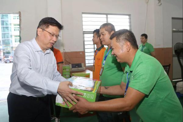 12月26日,中国邮政集团工会常务副主席谷德凯一行到三亚市分公司开展调研和慰问工作,为一线员工送来温暖的问候和慰问品。省分公司副总经理、省邮政工会主席陈奋陪同调研。