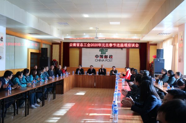 1月3日,由云南省总工会副主席杨卫中一行组成的慰问组,前往曲靖市邮政分公司看望慰问元旦春节期间坚守工作岗位的邮政基层职工,并向广大邮政干部职工送上新春佳节的问候与美好祝福。
