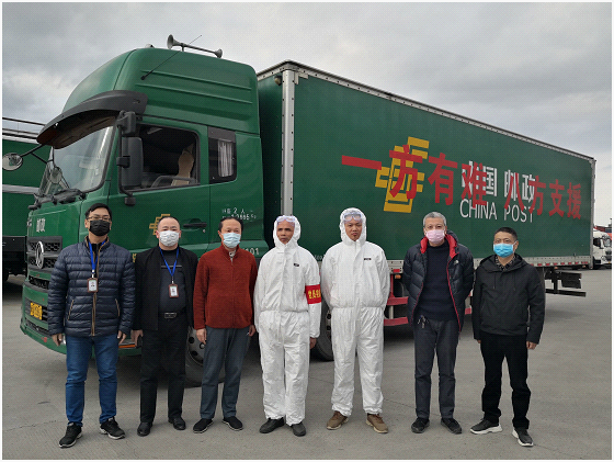 两位同志采用“人休车不休”的方式,在连续行驶了16个小时后,于次日早晨7点多抵达武汉。因武汉处于封城期间,在进入武汉时,需经防疫站点检查,当检查人员得知是邮政车辆运送救援物资后,纷纷对驾驶员说道,“感谢你们远道而来支持武汉,你们辛苦了!”检查人员在做好登记后,便予以快速放行。两位同志到达武汉中心局后,立即配合做好卸车衔接,顺利完成10000副口罩等救援物资的交接,不辱使命,不负重托,助力武汉抗击疫情。