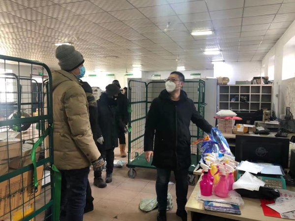 在得知疫情消息后,大年初三由总经理组建疫情防控领导小组,建立微信群,明确各部门分工,有序安排疫情防控和生产经营工作。班子成员提前返岗,对营投、车队、营业网点进行走访,发放防疫物品,并对相关生产场地、车辆和用品进行消毒。邮政工会配合市场部在齐市、讷河等地采购口罩、消毒液、酒精、手套、额温枪、体温计等防疫物品并结合市公司下发防疫物品,最大限度保障一线职工防护物品使用用量。工会人员还参与到一线生产工作中,严控各生产环节操作风险,全力保证一线人员防疫物品供应和生产安全保障。