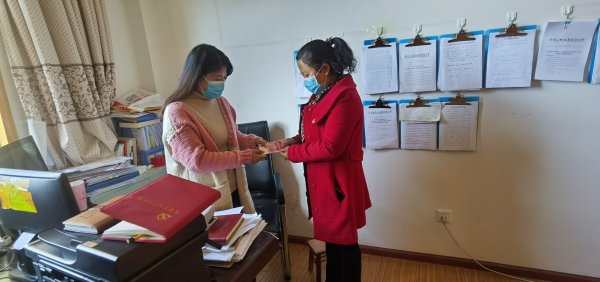 2月12日,全国劳模尼玛拉木在德钦县云岭乡机关党支部开展支部主题党日之际,主动交上了一笔“特殊党费”,用于支持疫情防控工作,当得知云岭乡党委、政府正在组织募捐活动时,她又积极捐款1000元。