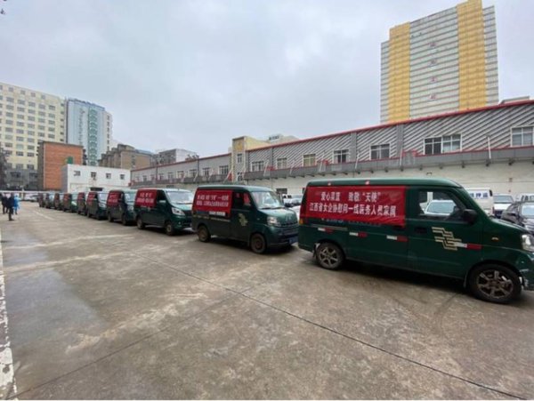 2月13日9:30分,南昌市分公司速递部在对邮政车辆进行消毒处理后,开始组织一线员工佩戴口罩、手套分箱打包。10:25分,装车。11:02分,发车。下午14:00前,所有捐赠的生活物资全部配送到位。