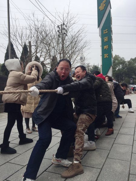表彰活动结束后,开始了拔河比赛,江西省分公司直属机关五个工会小组各选派了一支代表队参与了比赛。比赛采取淘汰制,三局两胜。比赛中,双方选手都各不相让、拼尽全力去争取胜利;“加油、加油……”双方的拉拉队员都在为参赛队员们打气鼓劲,助威声和欢呼声此起彼伏。经过近1个小时的激烈比拼,第一工会小组荣获了第一名,第五工会小组荣获了第二名。