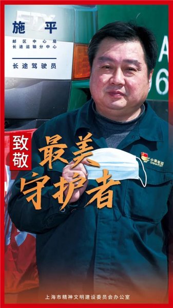 施平,入职已有30多年,个人安全行驶里程已达170余万公里。担任长途邮运驾驶员已有23年的他,总结了一套“驾驶专心、保养用心、带教耐心”三心工作法和“惯性上坡、中间加速、下坡滑行”爬坡三步法。他还积极参与青年员工带教工作,传授驾驶经验,共有4名徒弟实现了安全行驶里程100万公里。此次新型冠状病毒感染肺炎疫情发生后,他即向党组织提交了请战书,请战书中写道:“作为一名60后,我有着20多年的长途邮运经验,但是我的党龄并不长。在党和人民需要的关键时刻,正是我接受党性锻炼的一次机会,我必须挺身而出。请领导放心,虽然我长期负责的是济南线的邮运任务,但是我有自信有能力担当好此次重任,以最快的速度将防疫抗疫物资安全地送往防疫最前线。同时我会妥善安排好家中的一切,不让组织和家人担心。驰援武汉,我合适!”1月29日,施平圆满完成发往武汉的第一次运输任务后,就立即重返发往武汉的邮路上去。他和他的同伴们日夜兼程,一路上,饿了就吃点提前备好的方便面和饼干,期间为了缩短行驶时间,他们甚至不舍得多喝一口水,减少上厕所的次数......春节至今,施平始终忙碌在运输物资的第一线,和同伴们往返上海和武汉8个来回,个人行驶里程达7000多公里。