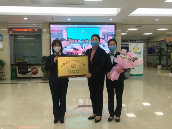 饶冬梅为广场营业所颁发了“江西省五一巾帼标兵岗”奖牌,并表示了祝贺:“恭喜你们获得省五一巾帼标兵岗,无论是在生活还是工作中,我相信你们每个人都柔而不弱,美而不疲,是我们大家学习的榜样!”同时,她希望广场营业所的员工继续在岗位创新工作中作出表率。