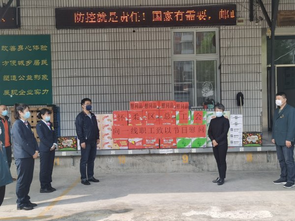 4月30日,怀柔区总工会副主席崔晓阳来到怀柔区分公司慰问一线员工,代表区总工会向邮政员工致以节日的问候,并将慰问物资发放到职工手中。