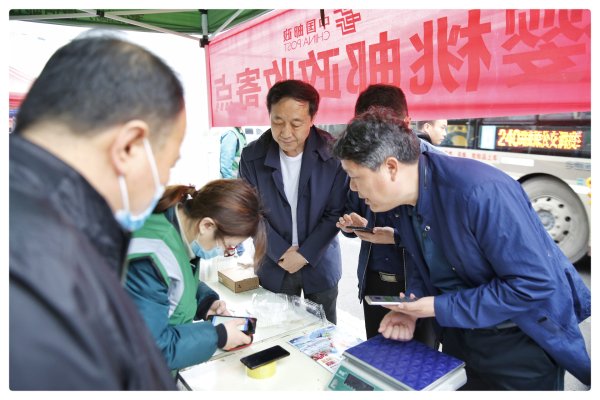 在樱桃收寄点,强国茂副总经理一行现场进行模拟收寄,测试发寄时限;在白鹿原樱桃项目指挥部,察看物料库房,与内部处理人员亲切交谈,从网上下单、运行质量、客服跟踪、现场收寄、客户回访等环节进行详细了解与指导。