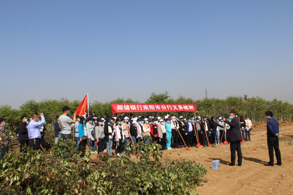 为进一步提高全体职工生态环保建设意识,营造保护地球、爱护环境的环保理念,邮储银行南阳市分行于近日在南阳市生态环保静脉园区开展了“手植一棵树 绿化一片天”义务植树活动。此次义务植树活动得到了南阳市城管局的高度重视和大力支持,该局为植树活动提供了植树基地、树苗、灌溉浇水车和绿豆水等后勤保障工作。