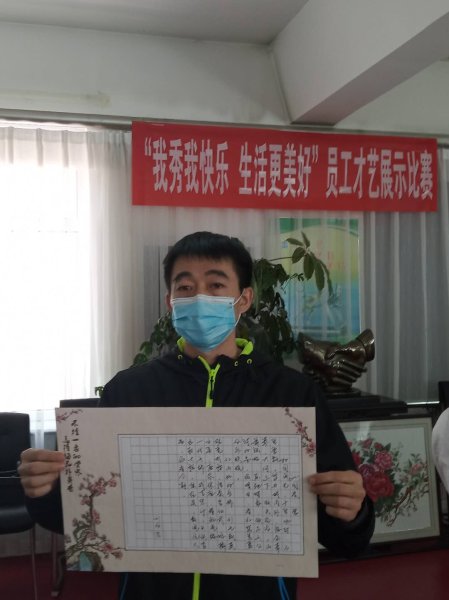 本次才艺展示是我公司为展现员工精神风貌,增强员工的凝聚力和向心力,营造积极向上的工作氛围而开展的活动,这次才艺展示分三个阶段进行:第一阶段,5月初下发通知,动员干部职工积极参与;第二阶段,5月中下旬,进行了作品的收集和归纳,共征集摄影作品4幅,书法作品7幅,十字绣(丝带绣、钻石画)作品3幅,糕点制品1件。第三阶段,5月20日,在分公司三楼会议室展出并对作品进行评选,同时,以快手直播的方式,由每位参赛作者对创作的作品进行介绍,他们的十字绣作品《富贵平安》、《安居乐业》,摄影作品《留心观察, 生活很美》、《夕阳下的家乡美景》将七台河邮政职工的美好生活进行了图文并茂的描绘,刚劲有力的书法作品体现了参赛者对美好人生的追求。总之,每幅作品的展示都给前来参观的广大干部职工带来了意想不到的收获。