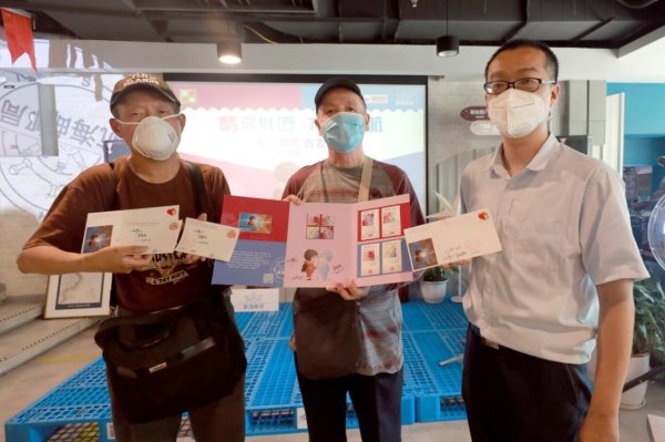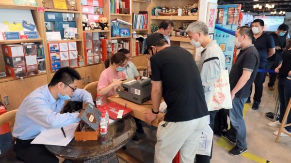 与首发活动同步开展的还有当天发行的《520我爱你》邮资机宣传戳加盖活动,邮迷粉丝有序排着长队来到航海邮局文创工作室加盖,活动现场气氛热烈。(上海邮政工会)
