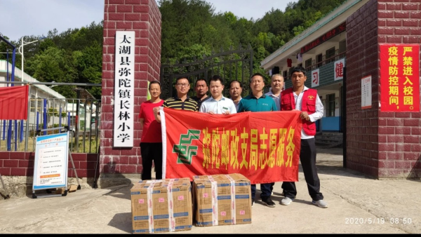 5月19日一大早,太湖县分公司弥陀支局院子里,汪林峰正忙着往邮车上搬运电扇。受新冠疫情影响,在得知今年学生放假的时间可能要推迟的情况后,汪林峰便主动和支局长商量,想赠送一批电扇给自己邮路上的学校。一路颠簸,大约四十多分钟,汪林峰的邮车将捐赠的电扇送到了弥陀最边远的学校——长林小学,还代替安庆市分公司丁洁女士向聂校长转交了1000元的爱心资助款。 从长林小学回来后,汪林峰又马不停蹄地和志愿者们一起把第二批电扇送到了圣迹小学。据了解,汪林峰这次个人捐赠了遥控电扇16台,总价值两千余元。