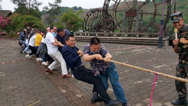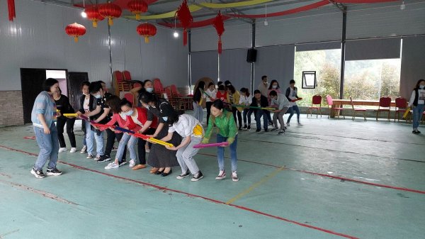 除了集体项目下午自由活动一小时,男生垂钓、竞走,女生进竹谷水涧三三两两走走坐坐交心谈心,也有的畅游在三角梅花坡中拍抖音……在拍完集体照后,乘车返回。5月30日活动结束当天,片区总经理张勇、工会主席王勇也来到活动现场,为员工打气助力,本次活动圆满结束。