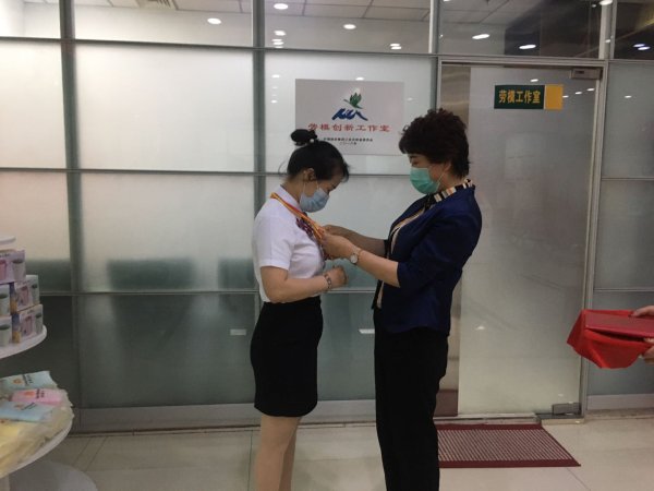 6月23日上午,吉林市总工会党组成员、副主席刘红卫,劳动和经济工作部部长谷朝阳一行专程来到吉林市邮政分公司,为荣获“吉林省五一劳动奖章”的吉林市分公司船营支局梁春慧同志送来荣誉奖章和证书,并亲自为梁春慧佩戴上荣誉奖章。