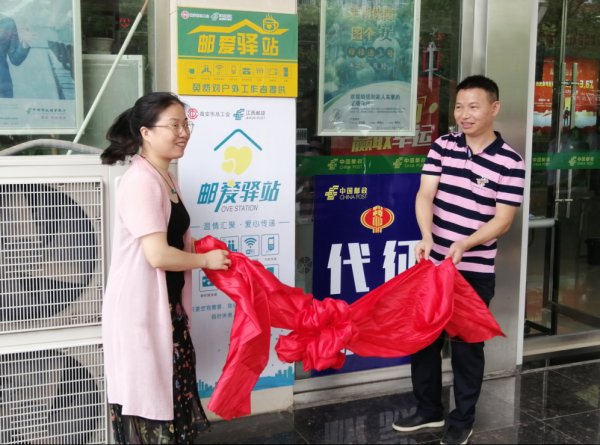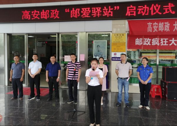 七月初夏,天高云淡,碧空如洗。为积极响应江西省总工会关于推进户外劳动者“爱心驿站”建设的倡议,贯彻落实中国邮政集团公司“人民邮政为人民”的战略部署,7月3日上午,江西省宜春市高安市总工会、高安市邮政分公司在邮政大楼支局网点举办了“邮爱驿站”服务点启动仪式。高安市总工会副主席雷庭,宜春市邮政工会副主席文乐,高安市邮政分公司副总经理、快递协会会长邓义波,高安市邮政分公司副总经理、工会主席杨礼全,高安市环卫处工会主席梁春琴,高安市城管局工会主席兰新华,高安市快递协会秘书长杨 文武,环卫工人、城管人员和快递员代表参加了启动仪式。雷庭和文乐共同为邮爱驿站揭牌。