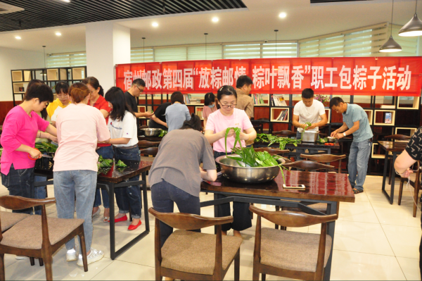 6月23日下午,宿州市分公司组织了第四届““放粽邮情 粽叶飘香”职工包粽子活动。在活动现场,无论是会的,还是不会的,大家都踊跃参与,在历时2个小时的活动中,始终洋溢着欢声笑语。