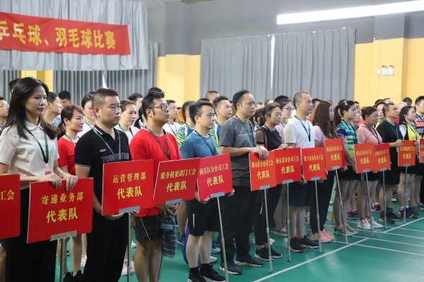 7月23日,衡阳邮政第七届“幸福杯”职工乒乓球、羽毛球比赛在衡阳市五环全民健身广场隆重举行。市分公司党委书记、总经理杜辉以及副总经理、工会主席赖红升莅临开幕式指导,来自全市邮政各基层工会的21支代表队近百名运动员参加比赛。