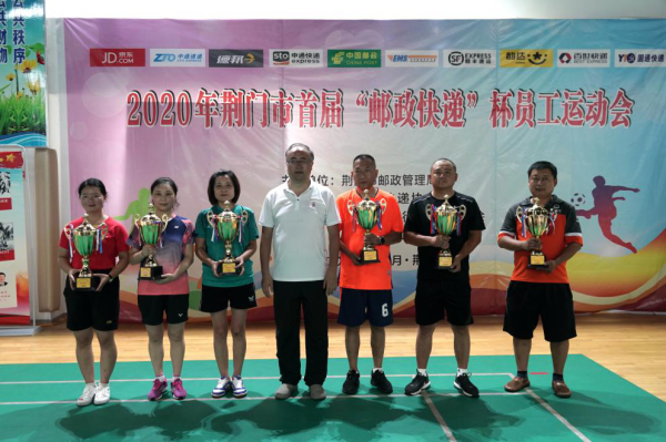 经过一天半角逐,荆门邮政队夺得首届“邮政快递杯”员工运动会足球比赛冠军,荆门城区邮政乒乓球队夺得首届“邮政快递杯”员工运动会乒乓球比赛团体第一名,城区邮政分公司吴继明夺得乒乓球男子单打第一名,沙洋邮政联队龚意霞夺得乒乓球女子单打第一名。