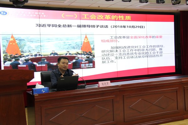 下午,北京市工会干部学院工会理论与职工教育研究所刘光宇副所长授课《工会改革与职工发展》,他从工会近年来的改革脉络和全总、市总近期文件、举措入手,重点讲解了十九届四中全会与工会工作的关系,深入剖析了工会改革的性质、方向和目标,让北京邮政各级工会组织和广大工会干部全面系统地领会和把握了工会工作新思想、新论断、新目标、新要求,有效促进了学思践悟、融会贯通,把新时期工会重要论述、会议精神转化为做好工会工作的强大思想武器。