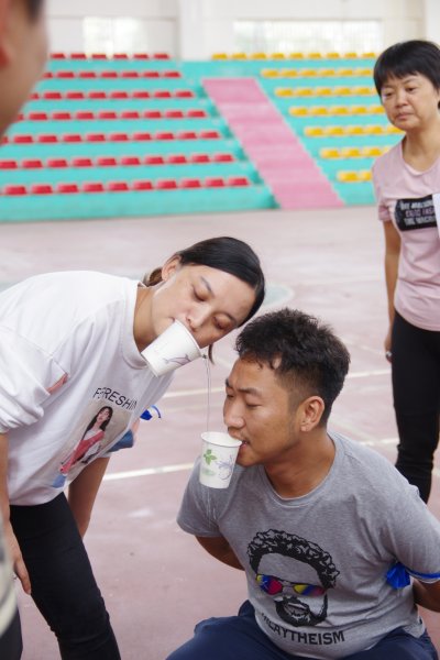整个活动共有12个游戏节目:螃蟹接力赛跑、托乒乓球赛跑、袋鼠跳接力赛、摸石头过河接力赛、定点投篮比赛、三人四足、杯水传情、扑面而来、气球吹杯、蒙眼弹瓶盖、吃瓜比赛、企鹅漫步。一个个有趣的节目让人笑得前仰后合,活动中团队之间相互配合、永争第一的竞技精神让人心潮澎湃,呐喊声、笑语声不时在场内响起。