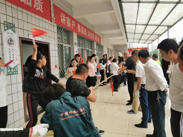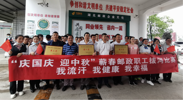 9月29日下午,为加强爱国主义教育,弘扬爱国主义精神,丰富全体员工的业余生活,发挥蕲春邮政员工的精神风貌,增进员工之间的友谊,培养员工的团队精神,增强员工凝聚力和向心力,提高员工的身体素质,从而更好的促进各项工作的顺利开展。在国庆中秋佳节来临之际,蕲春县分公司组织各支局、机关各部门开展“我流汗,我健康,我幸福”全员健身活动暨全县“庆国庆 迎中秋”拔河比赛。