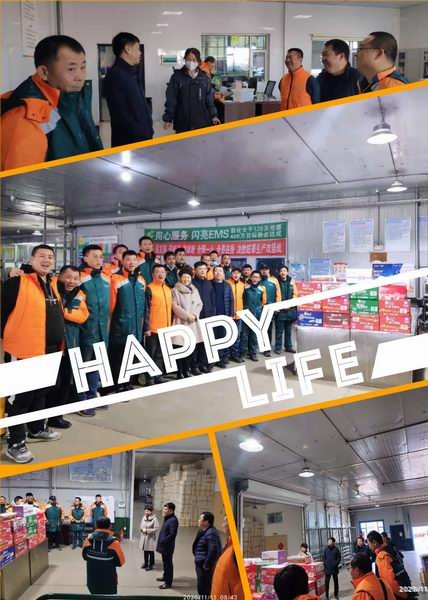 敦化市邮政工会为认真履行好工会职责,充分体现企业人文关怀,全心全意服务企业一线职工。“双十一”期间,敦化市分公司总经理朱春辉,副总经理、工会主席崔琴英,副总经理王伟组成慰问组,来到长德物流转运中心,看望慰问奋战在寄递一线的干部职工,为他们送去方便面、火腿肠、饮料等慰问食品,切实将企业的温暖与关怀传递到每一名一线员工的心中。