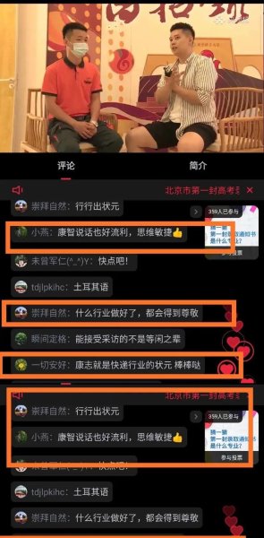 四个月前的8月7日,央视频、新京报我们视频等多个平台对北京首封高考录取通知书寄递工作进行全程直播;8月14、15日,央视频与中国邮政合作推出《高考录取通知书驾到》线上直播。两次直播活动累计形成2618.64万人次观看,300余万点赞量,3.3万条评论,并引发《新闻联播》《朝闻天下》等多档栏目及多家媒体的关注与报道。两场直播活动中,负责投递北京地区高考录取通知书的揽投员——北京邮政海淀区分公司清华营业部经理康智在直播过程中表现出的精湛的业务素质、真诚的服务态度、独特的人格魅力,深受广大网友喜爱。 网友们不吝笔墨,纷纷点赞留言,洋洋洒洒地表达着对康智的肯定与好评。