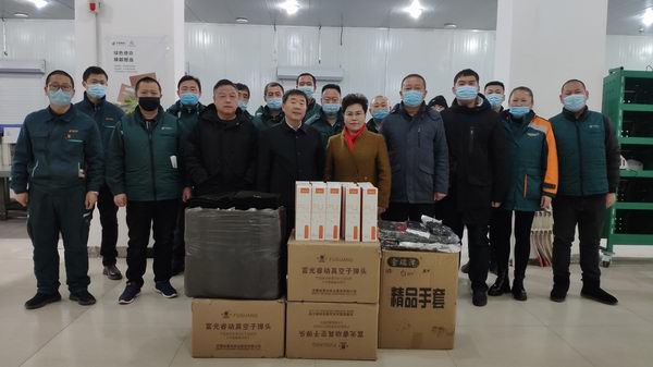 12月15日,白山市分公司副总经理、工会主席邹洪臣,白山市分公司副总经理陈广坤一行来到寄递事业部生产场地,为投递员、分拣转运人员、邮运司机送来了保温壶、保暖脖套、帽子,以及为寄递人员定购的专用触屏手套,把邮政大家庭的温暖和关怀送到了一线职工身边。