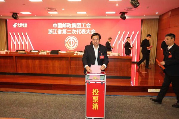 12月10日—11日,中国邮政集团工会浙江省第二次代表大会在杭州隆重召开。浙江省分公司党委书记、总经理方志鹏到会祝贺并讲话;浙江省分公司党委委员、纪委书记于叶俊,浙江省分公司党委委员、副总经理王玮、祝张尧、杨嘉树等领导出席大会,来自全省邮政不同岗位的126名代表参加会议,共谋邮政发展,共商邮政工会工作大计。