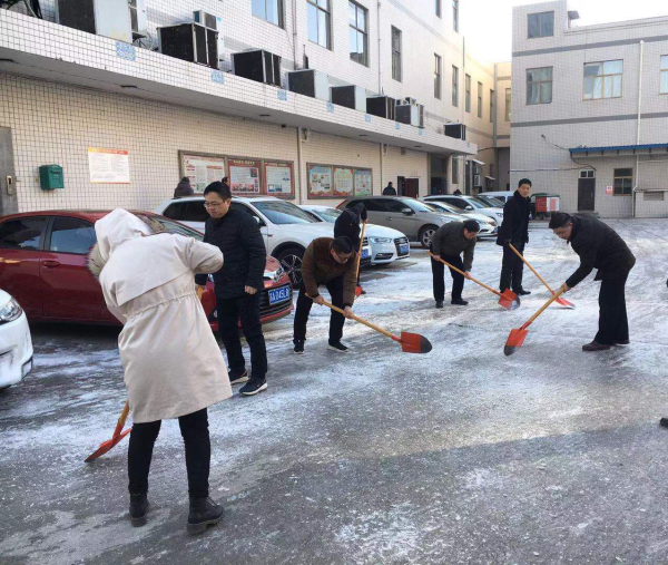 一场强降雪天气,让马鞍山的地面上积雪起一层水冰,使得员工工作区路面积冰严重,给员工们带来了美丽雪景的同时,也给员的出行带来了不便。为方便员工的出行,减少降雪带给大家的安全隐患。