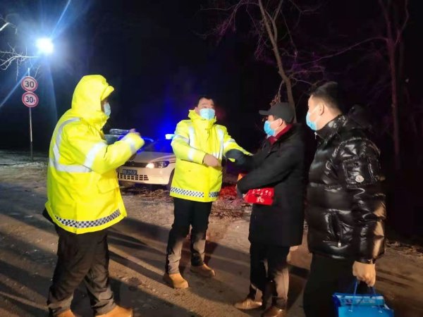 亓部长代表卡点人员对区分公司工会的爱心举措表示感谢,并给予高度赞扬。她说:“邮政公司工会今日的暖心举动,真正证明了一句话“疫情面前没有局外人”,作为驻碾省直单位,对自身企业严格管控的情况下,还热心于公益来慰问卡点,确实在这寒冷的夜温暖了人心。”