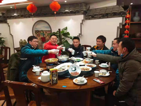 除此之外,还开展了相关节日暖心活动,精心为广大员工送去了牛奶、水果、方便面等食物,细致安排好就地过年员工的节日用餐、住宿、娱乐、健身等服务保障、节日慰问和安全防疫工作,助力企业切实加强对职工的关心关爱。 图为宿松路营业部为就地过年且坚守岗位员工准备的年夜饭。