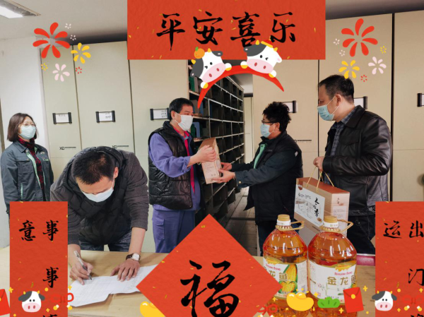 牛年春节来临之际,北京邮区中心局工会精心为职工准备了多种多样的节日祝福:为全局职工送上“年年有余”的油、米、杂粮礼盒,为一线的员工送上“春意融融”的干果、山珍礼盒,并特别为春节期间坚守岗位的人员准备了熟食、方便食品、饮料等;为在职和退休劳模、困难职工以及离、退休老干部们送去了“爱心满满”的慰问金和米、油、牛奶等生活必需品;为“留京过年”的非京籍职工们送上了“平安喜乐”的爱心大礼盒。
