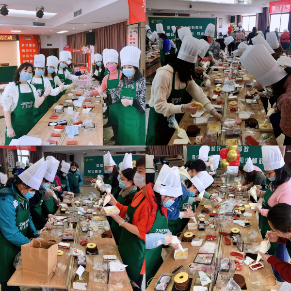 热心的烘焙师已经把制作的原料、工具准备齐全,大家系上围裙、带上手套和口罩,甜蜜的烘焙时光便开启了。在烘培师的指导下,女职工们悉心学习每一个制作步骤,手法纯正,同时利用新鲜欲滴的食材,以及各种模具分别做出了一个个香气扑鼻的蛋糕和精致的小甜点!无论卖相还是口味都不亚于专卖店,使人垂涎欲滴。一番忙碌后,大家团聚一室,感受着春天的气息,享受了一个幸福的上午时光。 此次烘焙活动让女职工们一起享受着繁忙的工作之余难得的悠闲时光,放松身心,感受生活,热爱生活,大家体验着自己动手DIY的制作乐趣,分享着温馨甜蜜的烘焙时光,一片其乐融融!